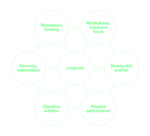 Each element works in harmony, transforming fragmented tools into one intelligent flow — helping you stay younger, stronger, and in control of your healthspan