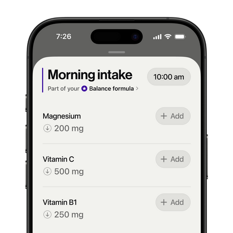 The app creates and adjusts a personal supplement formula that evolves with your lifestyle, training, and recovery needs.